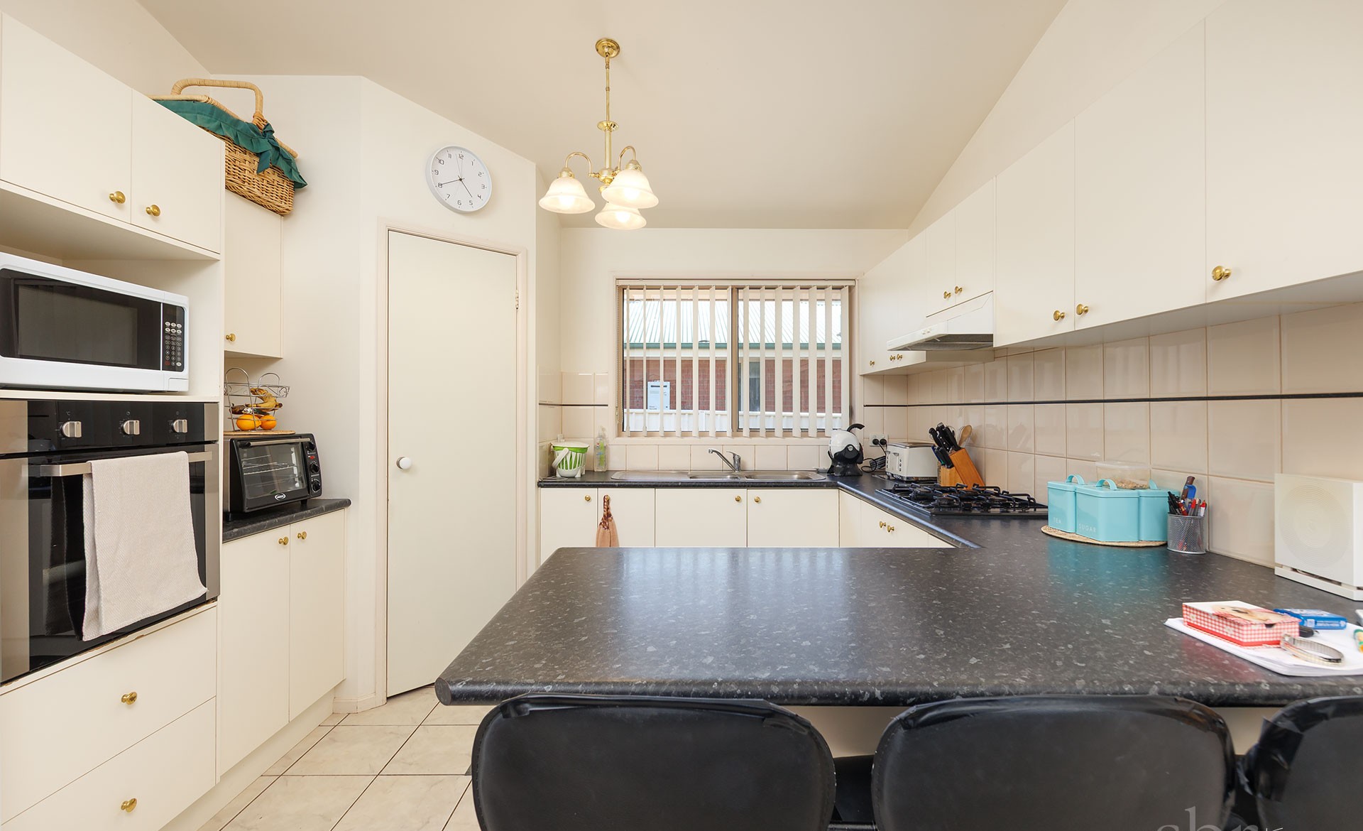 - Functional kitchen with gas cooktop, electric oven, excellent storage options, and ample bench space,