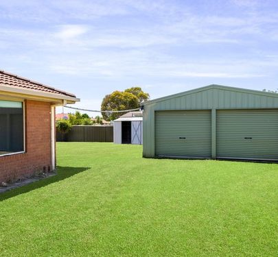 Double bay carport provides sheltered parking with convenient rear yard access. The secure backyard includes a double lock-up garage/workshop and a garden shed, while the spacious lawn area offers plenty of room for kids to enjoy.
