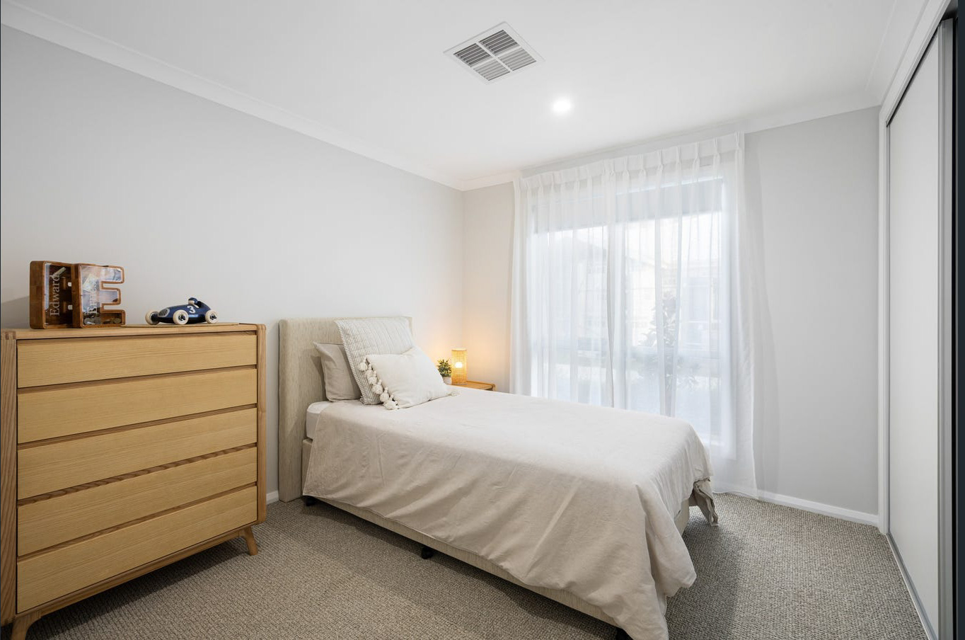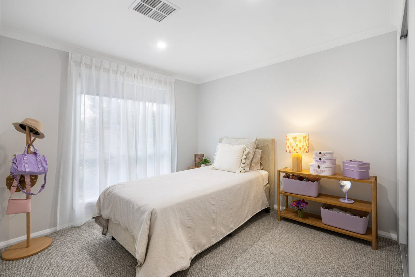 A double remote garage offers internal access as well as drive-through access to the backyard for added practicality. Additional features include ducted reverse-cycle heating and cooling for year-round comfort. The fully fenced yard offers a safe space for children.